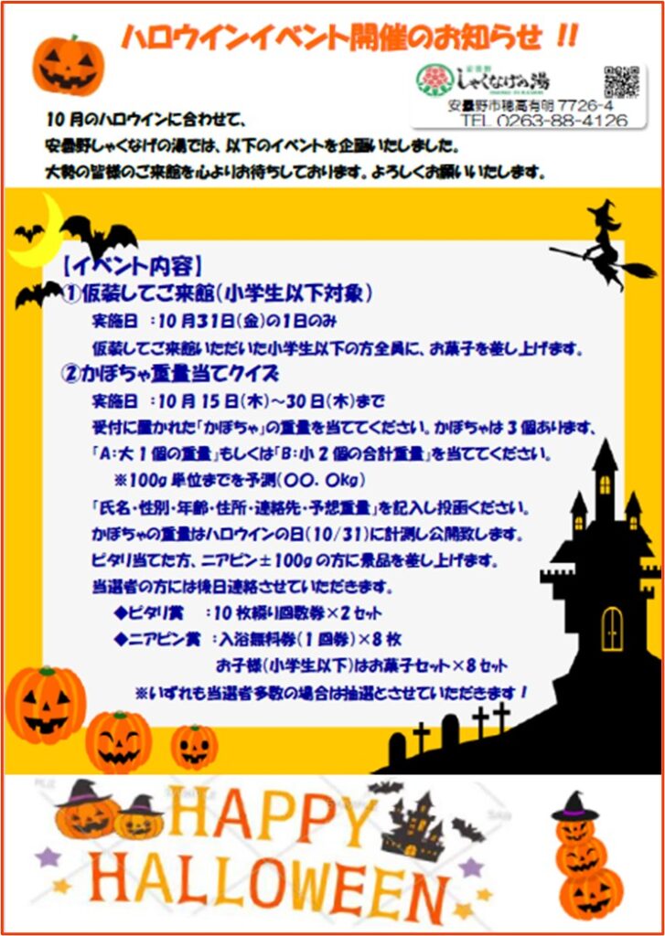 ☆ハロウインイベント開催のお知らせ☆